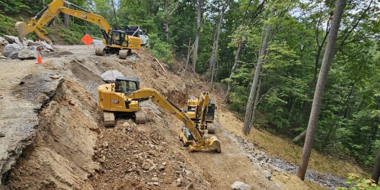 Old Toll Road Landslide Recovery Project The Old Toll Road Landslide Recovery Project addresses damage caused by Tropical Storm Helene, which triggered a landslide on Old Toll Road near the intersection with Sunset Drive on September 27, 2024. Public Works crews began repairs in March 2025, installing stormwater infrastructure and rebuilding the road.