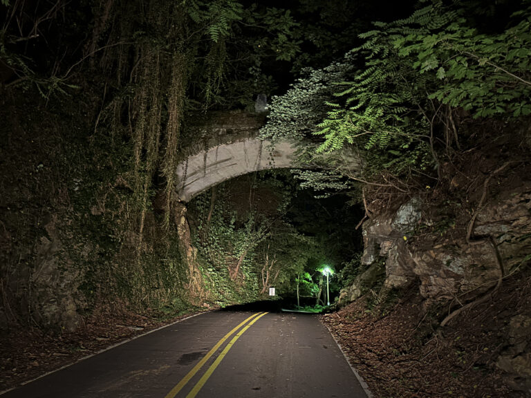 Helen’s Bridge, 201 Beaucatcher Road, is made of quarried stone and was constructed in 1909 to provide access to the nearby Zealandia Mansion. The legend speaks of a woman named Helen who lived at or near the mansion with her beloved daughter.