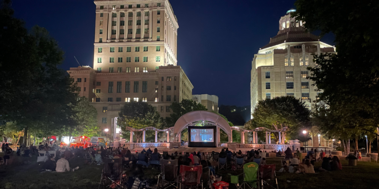 Community members are invited to bring blankets and lawn chairs to free viewings that begin after dusk on the second Friday of each month.