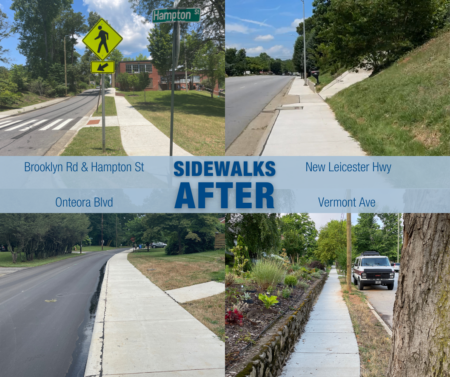 • Onteora Boulevard: Starting at Raleigh Road and ending at Lincoln Avenue, this new 0.4 mile sidewalk provides connectivity to the existing sidewalk that leads to Oakley Elementary School and Fairview Road. Much needed stormwater utility work was completed in conjunction with the sidewalk construction, as well as resurfacing of the street in the project area.