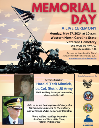 A Memorial Day Ceremony will be held on May 27 at 10 a.m. at the Western North Carolina State Veterans Cemetery, 926 West Old Highway 70, Black Mountain, N.C.
