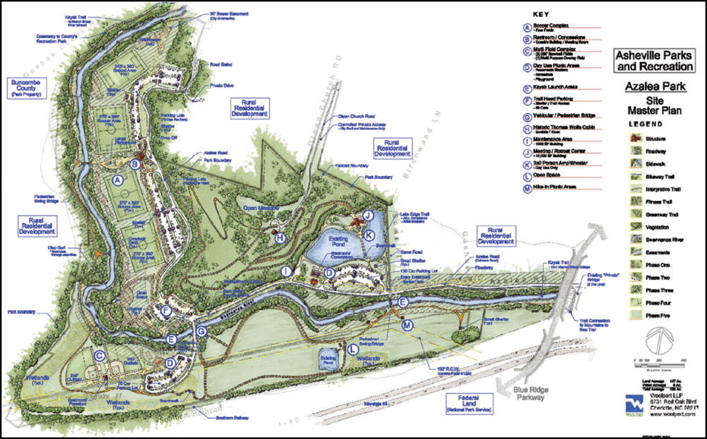 - The original Azalea Park site plan included several features that never materialized including a retreat center, diamond sports fields, disc golf, and a boardwalk.