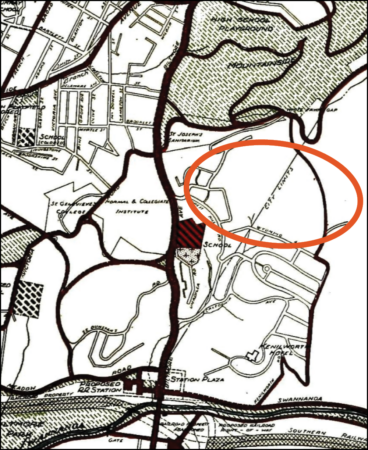 - The boundaries of South Asheville were roughly within the orange oval and include part of Wyoming Road with Kenilworth Road as the boundary between the white homes of Kenilworth and the Black homes of South Asheville that were scattered along unpaved roads and footpaths. Structures were built using any available materials and usually had no electricity or plumbing with water for washing and drinking coming from springs and creeks. John Nolen and Philip W. Foster, City Planning Report: Asheville, North Carolina, Cambridge, MA: Harvard Square, 1922.