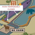 Big changes are coming to the Nature Center! A renovated farmyard, an expanded gift shop, and a butterfly garden are coming. To prepare for the next phase of construction, a section of the guest path in the barnyard and aviary area will be closed for the next few weeks. You’ll still be able to view the aviary, and our barn animals will be making use of a temporary corral across from the mining sluice. The Bear Boardwalk is open and will allow guests access to other areas of the park.