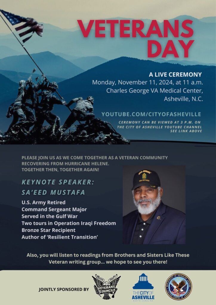 A Veterans Day Ceremony will be held on Monday, November 11 at 11 a.m. at the Charles George VA Medical Center in Asheville.