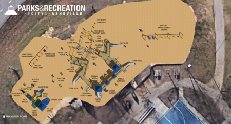 Over the years, APR closed parts of the current wooden playground to address safety considerations and maintenance issues. A complete replacement of all play equipment was approved in the City of Asheville’s current budget and staff are in early stages of planning for the project.