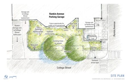 The primary goal for the prefabricated restroom facility is to provide a public restroom that is safe and accessible 24/7. A safe, activated downtown urban space with a public restroom in this location will improve urban livability, provide inclusive access to amenities that support public health and cleanliness conditions, and provide flexible opportunities for cultural and economic activity.